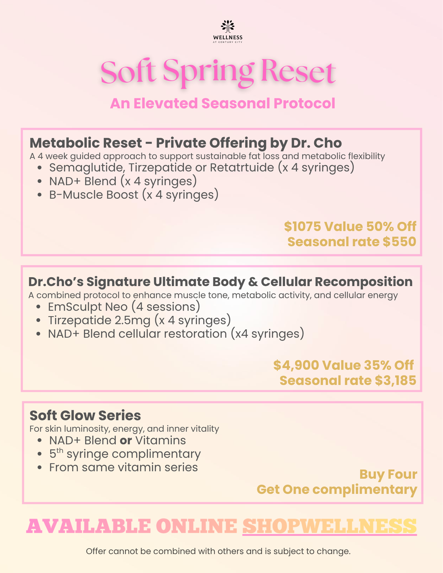 Disclaimer: All purchases from our practice are non-refundable to guarantee safe and high quality products for all patients. -Wellness at Century City